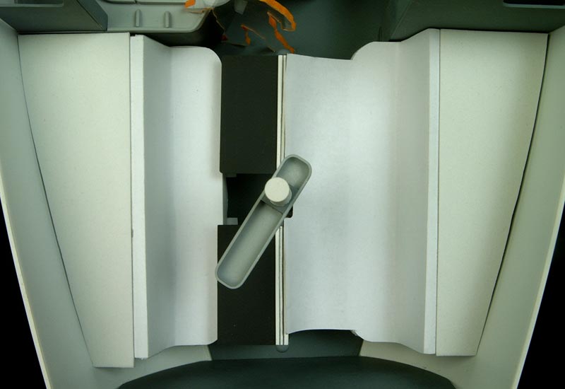 Le récipient fixé au mât peut bien-sûr accueillir les assiettes et sert d'accès rapide aux petits objets dont on se sert souvent (outils, lunettes de soleil, etc...). Le module central des tables escamotables peut être déplacé dans le cockpit lors des escales.
